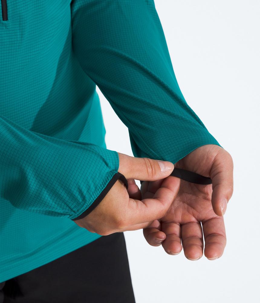 - Flat-sewn elastic cuffs with integrated thumb loops