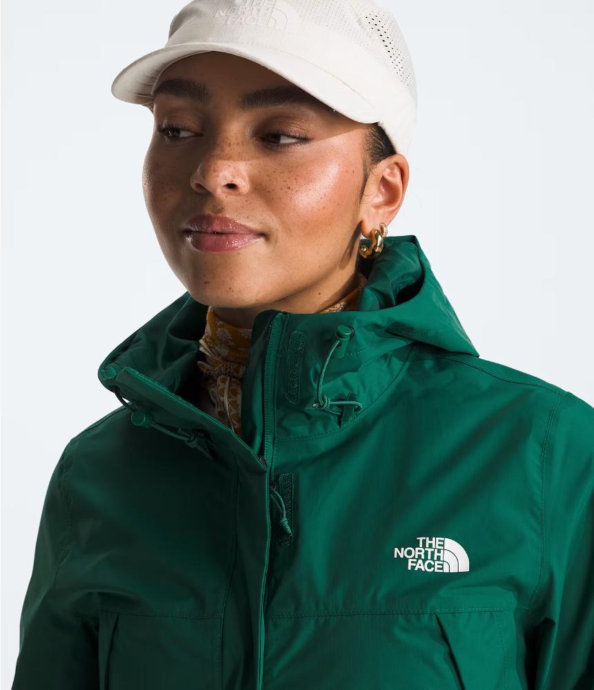 Made with 100% recycled fabrics, the North Face Women's Antora Parka is a bold, thigh-length silhouette inspired by their iconic Mountain Light Jacket. This water-repellent, breathable, and windproof shell features an adjustable hem and hood so you can customize your fit to the adventure.