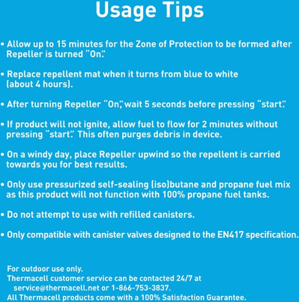 - Mat-only refill lasting 48 hours for use in the Thermacell backpacker mosquito repeller
