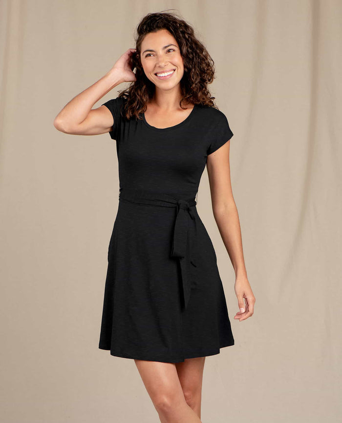 This year Toad & Co's reimagined the wrap dress and the t-shirt dress, and created this adorable two-in-one dress that will take you from the farmer's market to a backyard picnic, tasting at a brewery, and then on to dinner. Created from our exclusive Samba fabric, this durable and sustainably made dress has the slubby, soft feel of your go-to t-shirt with the classy drape and styling of your favorite wrap dress. It's the best of both worlds.