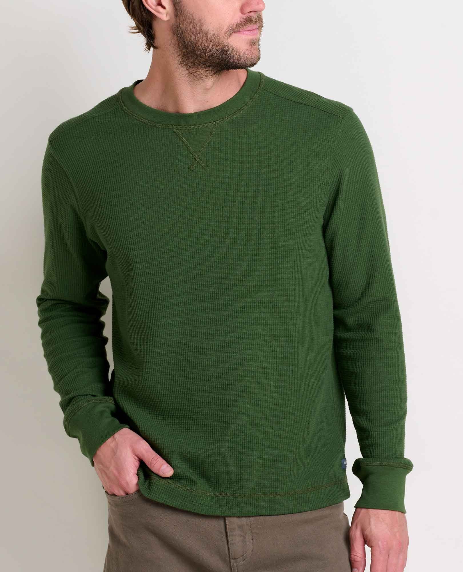 A waffle crew that offers outer texture and inner softness. Vintage detailing recalls the thermal shirts of yore, while 100% recycled materials spell a sustainable (and cozy) future._
