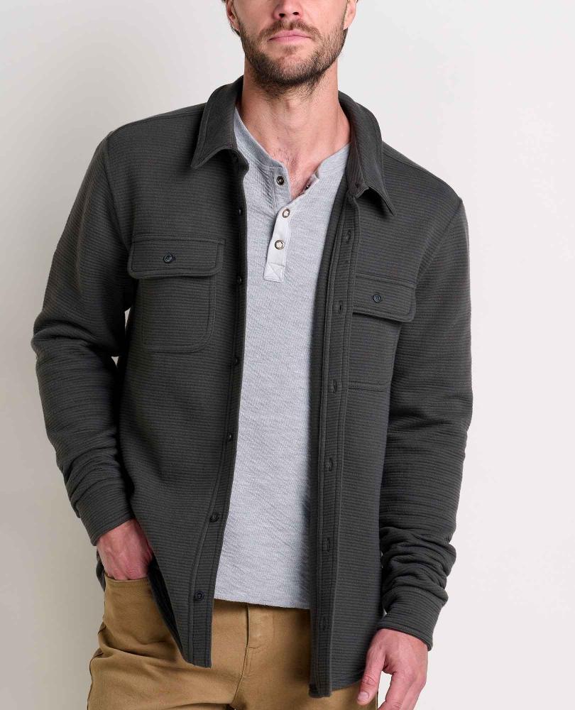 The Moonwake long sleeve shift combines the soft comfort of a sweatshirt, the loose fit of a jacket, and the formal style of a button up. The textured organic cotton features dual layers of lightweight jersey with a temperature-regulating layer between for added warmth.