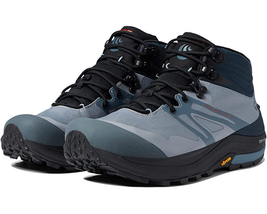 Topo's men's waterproof hiking boot features a full eVent® inner-bootie construction to keep feet dry and comfortable in every condition. The abrasion-resistant rip-stop mesh upper is lightweight and durable. A 3-piece midsole, featuring ZipFoam™, provides a cushioned experience underfoot, with more long-term resilience than traditional EVA. These Vibram® sole hiking boots feature Megagrip for the ultimate grip and traction on all surfaces, especially wet and slippery terrain. A full-length ESS rock plate offers total protection from rocks and roots, while the over-the-ankle molded foam collar provides additional security and support on rugged trails.