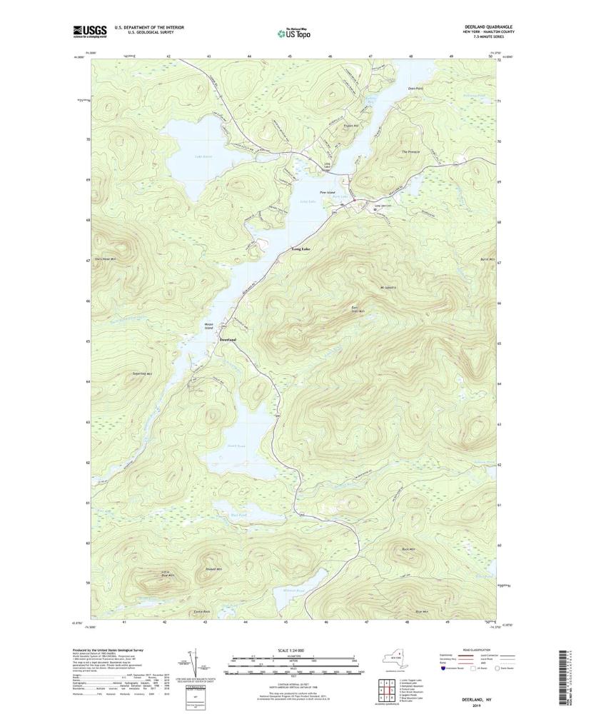 2019 topographic map quadrangle Deerland in the state of New York. Scale: 1:24000. Based on the newly updated USGS 7.5' US Topo map series, this map is in the following counties: Hamilton. The map contains contour data, water features, and other items you are used to seeing on USGS maps, but also has updated roads and other features.