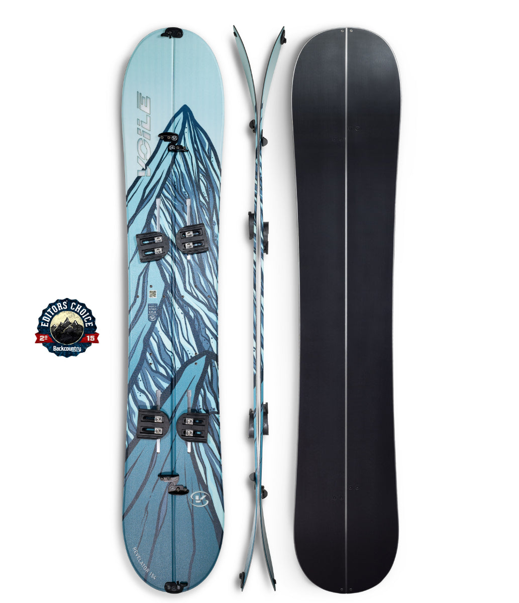 For the demanding rider, the Voilé Revelator is indeed backcountry's ultimate riding machine. The combination of this board's light weight, shape, profile, flex and camber helps make long uptracks a done deal and downhill rides a dream come true. And when it's time for the latter, nothing beats the patented system of "Voilé Hooks & Clips" for easy assembly of Revelator's halves into a single downhill plank.