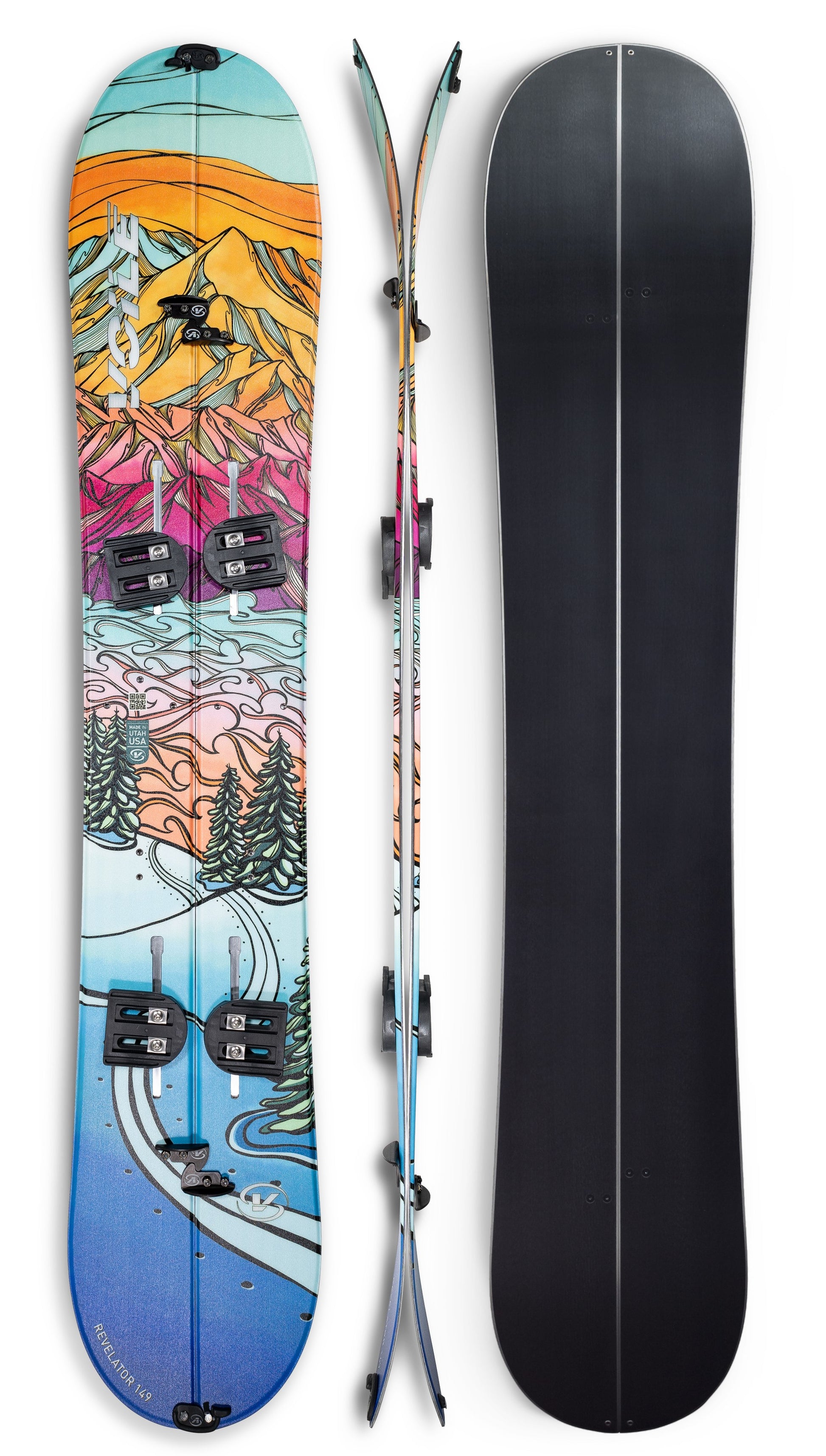 A demanding backcountry rider need not be a distant, unemotional creature with a propensity for playing air guitar or relishing their "cave" time. Truth is, the toughest snowboarders and backcountry enthusiasts out there are probably women. And for them, the Voilé Womens Revelator fits the bill. The board's relative width, robust flex, long camber area, early-rise nose, and tapered tail all help the Womens Revelator to shred the sickest of lines. Rumor has it that the signature Voilé Channel Puck System is quite the heartthrob too. Topsheet Artwork by Kylee Firlit